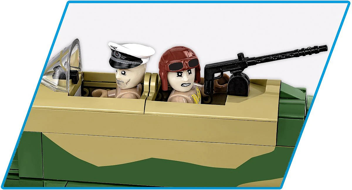 - 1:32 ölçeğinde geliştirilen blok model, 525 parçadan oluşur ve gerçekçi tropikal kamuflaj ve baskılarla zenginleştirilmiştir. Uçak, hareketli pervane ve kanatçıklara ve lastik tekerlekli dönen tekerleklere sahiptir. Kokpit açılabilir ve özenle tasarlanmış pilot ve topçu/telsiz operatörü figürleri kumandalara oturtulabilir. Uçak, monte edildiğinde 34,5 cm uzunluğundadır. Set ayrıca, uçağı “uçuş halinde” sergileyebileceğiniz şeffaf pimli özel bir stand içerir. Set, uçağın adının yazılı olduğu bir plaketle tamamlanmaktadır. Tropikal kamuflajlı JU 87 B-2, İkinci Dünya Savaşı uçak koleksiyonuna mükemmel bir ekleme! Set, sadece genç tarih meraklılarını değil, yetişkin koleksiyoncuları ve askeri teknoloji hayranlarını da memnun edecek.