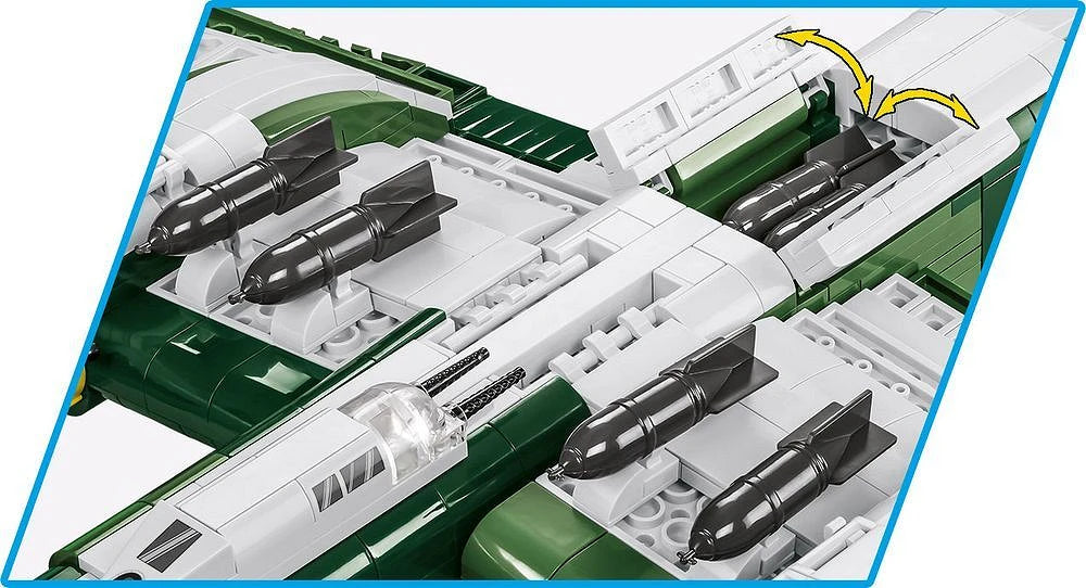 - Ünlü Ju-88 bombardıman uçağının COBI modeli, 1:32 oranındaki sansasyonel büyük ölçekte 1.160 yapı taşı kullanılarak özenle geliştirilmiştir. Set sadece kalıcı baskılar içerir. Burada tek bir çıkartma bile bulamazsınız! Kokpitin karmaşık şeklini daha iyi yansıtmak için yeni blok desenleri geliştirdik! Kokpitte bir pilot figürü de bulunmaktadır. Set, pervaneler, kanatçıklar ve bomba kapakları gibi hareketli parçalar içermektedir. Kanatların altında çıkarılabilir bombalar ve geri çekilebilir tekerlekler bulunmaktadır. Açık resimlere dayanan sezgisel talimatlar sayesinde, yapımı oldukça basittir. Bu uçak, tarih, havacılık, askeriye ve askeri teknoloji meraklıları için bir zorunluluktur.